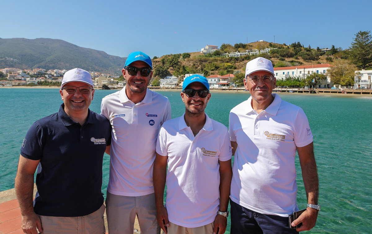 From left to right: Mr.Arhodidis, Group General Manager, Mr.Pavlos Kagialis, Sailing World Champion, Mr.Panagiotis Mantis, Sailing World Champion and Mr.Tsiveriotis, CEO of Spring Pass Capital Bank - Yacht Club of Andros